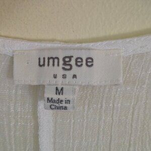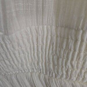 Umgee White Floral Embroidered Smocked Waist Midi Dress Slit Side Size M