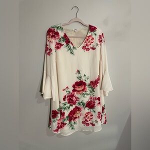 Umgee White Floral Mini Dress with Bell Sleeveses