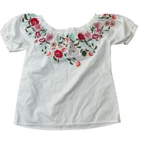 Umgee White Floral Vacation Top Wide Round Neck Elastic Pink Red Small