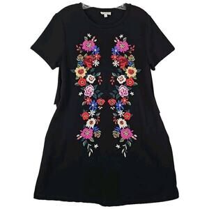 Umgee ~Woman Size S~ Black Embroidered Floral Short Sleeve Mini Dress Pockets.