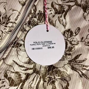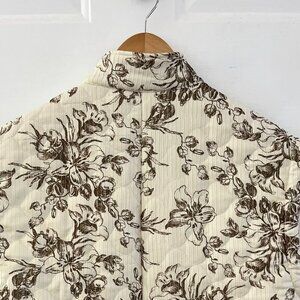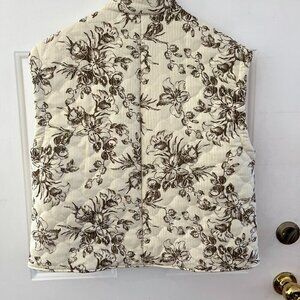 Umgee Woman's Cream Mix Quilted Puffy Cottage-Core Floral Print Vest Sz Lr