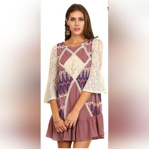 Umgee Woman's Crochet Boho, Bohemian pheasant, Long Lace Bell Sleeve Dress, NWT
