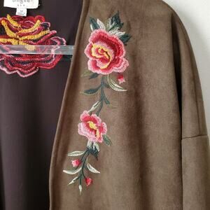 Umgee Women Faux Vegan Suede Embroidered Jacket Cardigan M Floral Boho Country