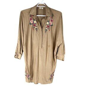Umgee Womens Size Large Embroidered Tunic Vegan Suede Dress Western Costal Cowgirl Boho Lagenlook