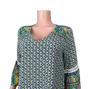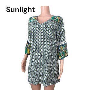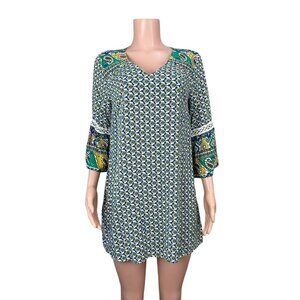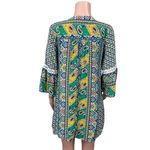 Umgee Women SZ M Mini Dress A Line Bell Sleeve Colorful Paisley Print Bohemian