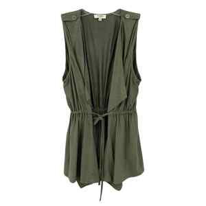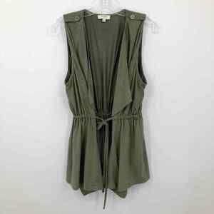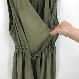 Umgee Women Tie Front Top S Green Open Front Surplice Sleeveless Soft Faux Suede