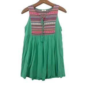 Umgee Women Top Sz S Green Sleeveless Tunic Tasseled Boho Stripes Peasant Hippie