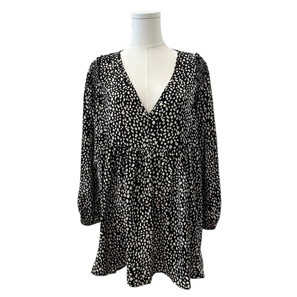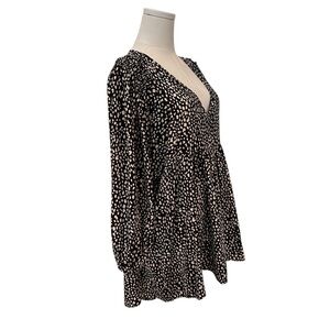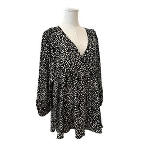 Umgee Women's 1XL Black White Relaxed Plus Babydoll Work Casual Flowy Blouse