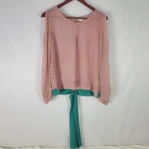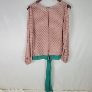 Umgee Womens Blouse Small Top Long Slit Sleeve Round Neck Sheer Slit Back Shirt