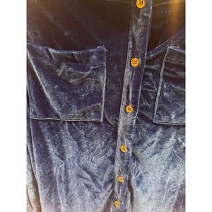 Umgee Women's Blue Velvet Long Sleeve Button Down Shirt Pockets, Size L team