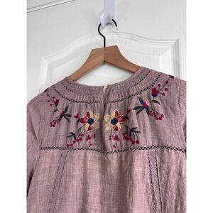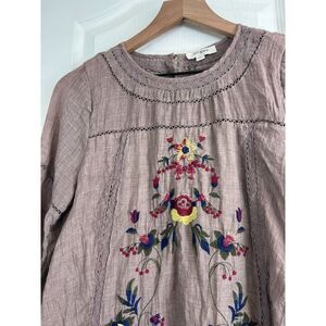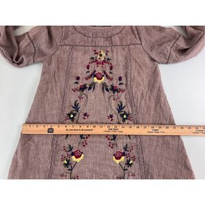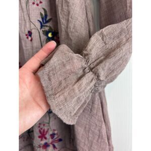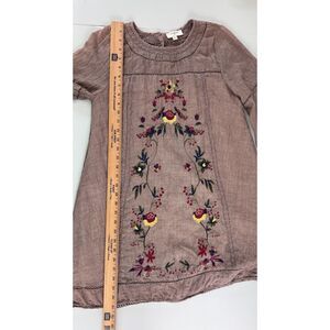 Umgee Women's Boho Floral Embroidered Long Sleeve Mini Dress Taupe Size S