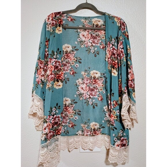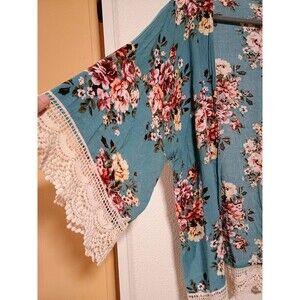 Umgee Womens Boho Floral Kimono Cardigan Size Large 100% Rayon