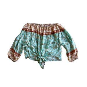 Umgee Women’s Boho Off Shoulder Floral Top Sz M Tie Front Peasant Blouse