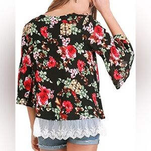 Umgee Women's Caged Floral Bell Sleeve Pullover Tunic Top Lace Y2K Boho Festival