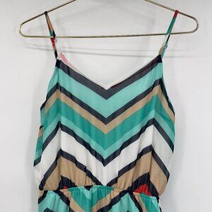 Umgee Women's Chevron Multicolor Elastic Waist Spaghetti Strap Maxi Dress Size M