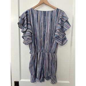 Umgee Women's Colorful Stripe Faux Wrap Ruffle Romper Elastic Waist Size S