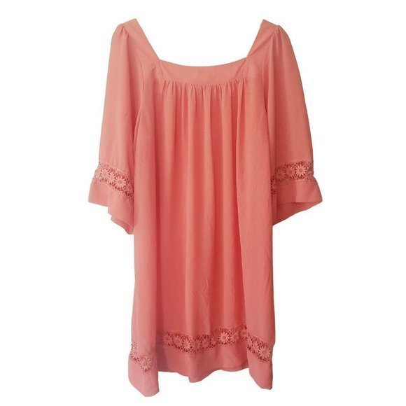 Umgee Womens Coral Square Neck Embroidered Tunic/Dress size Med