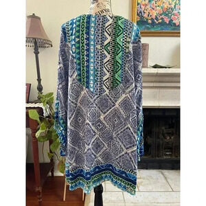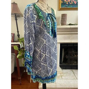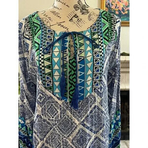 Umgee Women's Dress Size Large Blue‎ Geometric Bohemian Hippie Cotton Blend