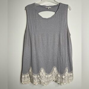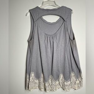 This item is preowned women's Umgee Grey Tank in a grey color with an off-white lace border!