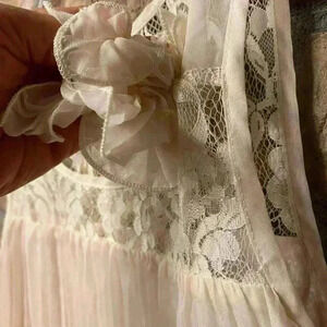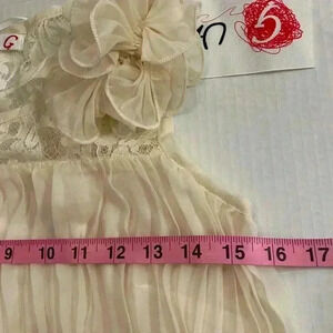 This is such a beautiful Umgee cream sleeveless mini dress. Perfect for ceremony, party or other special event. It has lace in the upper chest and is beautifully pleated all around the dress as well as the second under layer. It is 100% polyester and the beautiful ruffled flower on the chest is sewn on. The length is 32 1/2 inches and across the front armpit to armpit is 15 1/2 inches. It is new with tags. Thank you for considering my beautiful item.