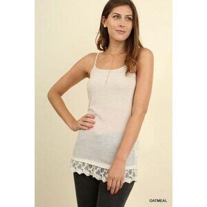 • Oatmeal Color/Ribbed Knit Construction/Adjustable Spaghetti Straps/Lace Trim Bottom Detail