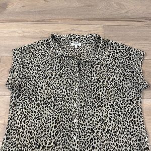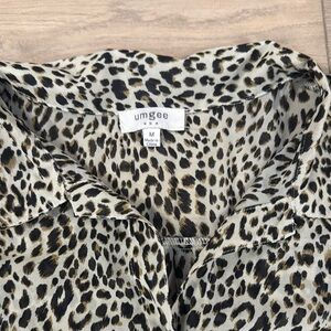 Umgee Women’s Leopard print button up semi sheer short sleeve shirt.