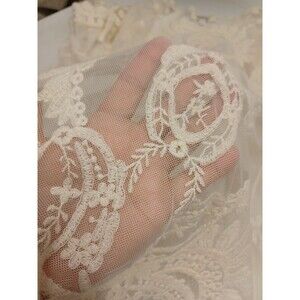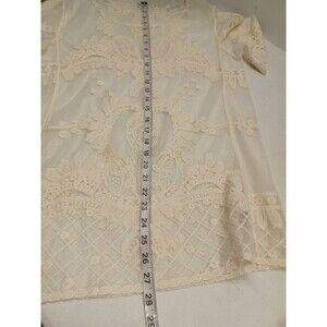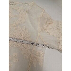 Umgee Women's Short Sleeve See Through Lace Floral Detailed Top Ivory S/M.