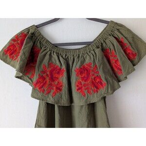 Umgee Women’s Size Small Green Red Floral Off Shoulder Dress