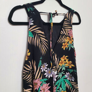 Umgee women’s sleeveless mini dress in black with vibrant tropical floral print, size Small.