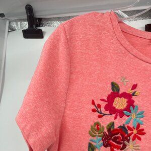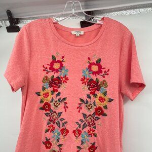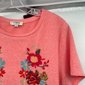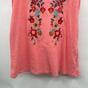 Umgee Womens T-Shirt Dress Embroidered Floral Pink/Multi Size Small