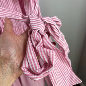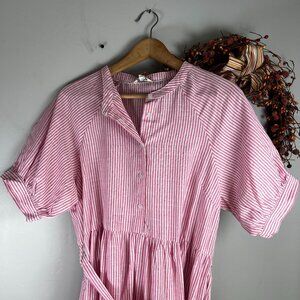 Umgee Womens Tiered Maxi Flare Dress with Sash Tie Size LARGE White Pink Striped