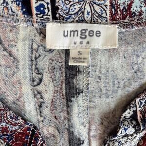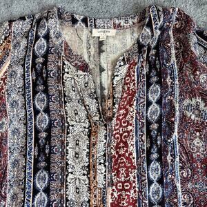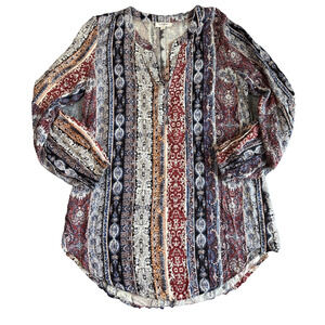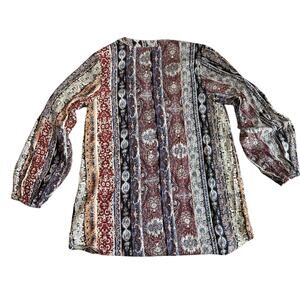 Umgee Women's Top Boho Tunic V-Neck Stiped Mosaic Cinched Cuff Multicolor Small