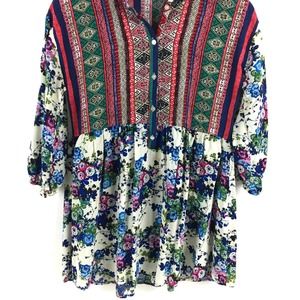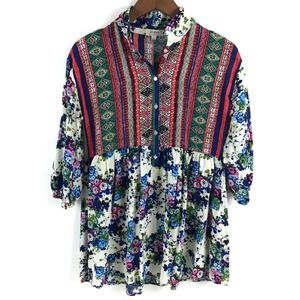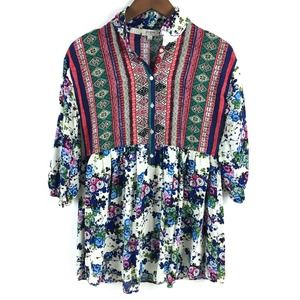 Umgee Womens Top Small Floral Tunic Babydoll Blouse Rayon Buttons Flowy Boho