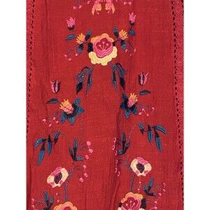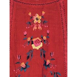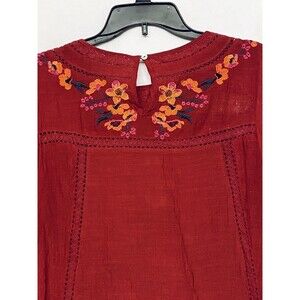 Umgee Womens Top size Small Red Floral Embroidered Boho Crepe Style Top with button closure keyhole back