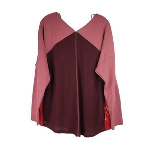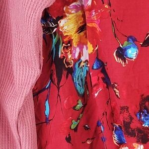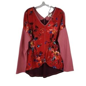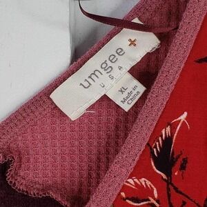 Umgee Womens Tunic Top Popover Size XL Lagenlook Floral Boho LS Cotton Rayon Red