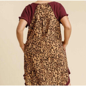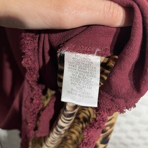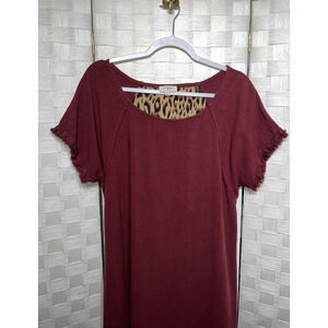 Umgee Womens Wine Animal Back Fishtail Scoop Tunic Dress Size Large Fall Boho