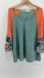 Umgee Womens XL Pre-Owned Mint Orange Color-blocked Floral Split Sleeve Waffle Knit Top Edgy