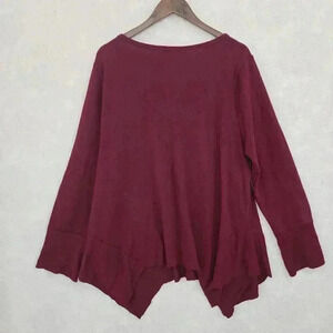 Umgee Women's XXL Sweater Scoop neck Asymmetrical Burgundy 546C