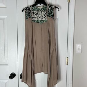Umgee Womens Tan Aztec Waterfall Western Print Vest Small