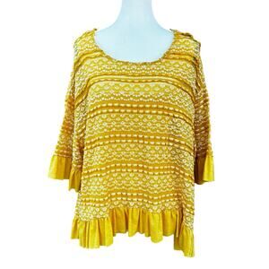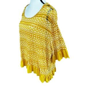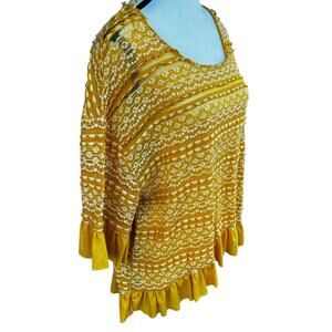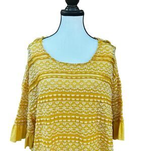 Umgee Yellow Lace Boho High Low Top Womens Size Small Crochet Sheer Tunic Blouse