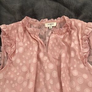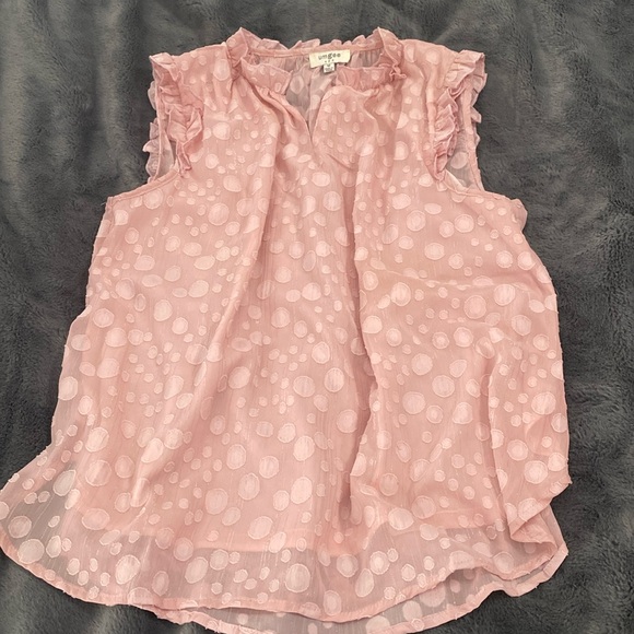 Like new condition baby pink blouse with polka dot design. Front is fully lined