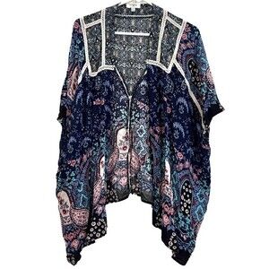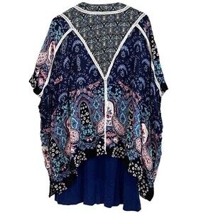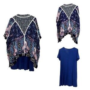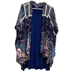 Umgee boho kimono wrap and Everly navy V-neck dress size large