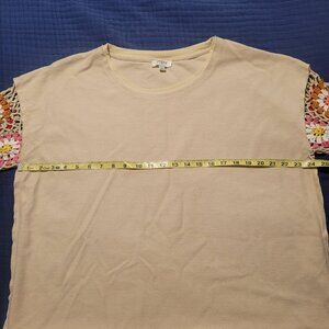 super soft and comfortable boho inspired beige/tan top from Umgee, size large, with crochet bell sleeves. please message with any questions .