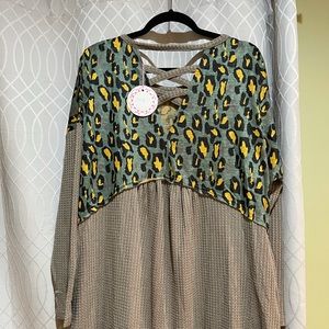 Super cute Brand new large Umgee dress/tunic. It’s super soft and would look great with leggings and boots if you are taller or as a dress if you are shorter depending on the look you’re going for. :)