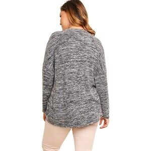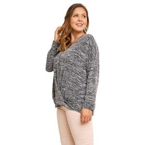 Umgee womens sweater wrap v-neck top marled fuzzy soft black and white comfortable loose fit oversized flattering covers your assets plus size twist hem twist front heathered modest basic work top career wear office outfit