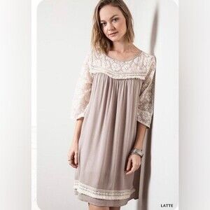 Umgee mocha and lace boho dress size medium