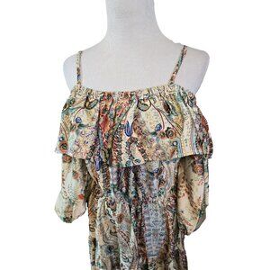 Umgee off the Shoulder 3/4 sleeve tiered vibrant print midi dress size M New