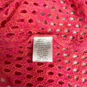 Umgee coral hot pink crochet open knit long sleeve tunic sweater size small in excellent condition,no flaws. This is so cute,perfect for summer to throw on over your swimsuit or denim shorts