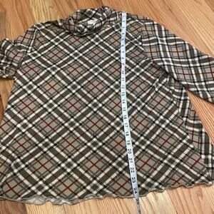 Umgee plaid striped tunic top with high neck and contrast elbow pads size medium