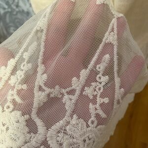 Beautiful cotton blend that looks similar to linen with lace detail on hem